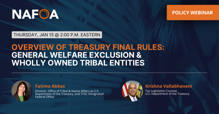 Participate in NAFOA’s Survey: Share your insights on the impact of Executive Order 14247 on your Tribal community. Your responses will inform NAFOA’s advocacy efforts with the U.S. Department of the Treasury. Responses are due by June 25, 2025.